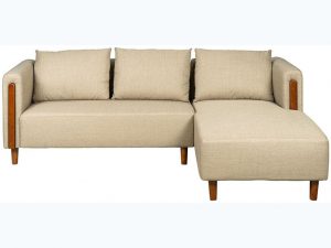 Sofa góc 3 chỗ cỡ nhỏ bọc vải, tay và chân ghế dùng gỗ tự nhiên sơn Pu.