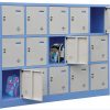 Tủ để đồ học sinh sắt sơn tĩnh điện gồm 18 khoang cánh mở, mỗi cánh có 01 khóa locker và 01 núm tay nắm. Kích thước sản phẩm phù hợp cho đối tượng học sinh mẫu giáo và tiểu học.