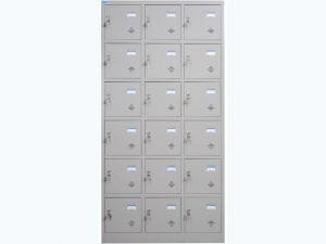 Tủ sắt locker văn phòng giá rẻ được làm bằng sắt sơn tĩnh điện. Tủ 18 khoang cánh mở, bên trên mỗi cánh có 1 khóa locker, núm tay nắm và tai móc khóa. Tủ đã được lắp ráp sẵn.