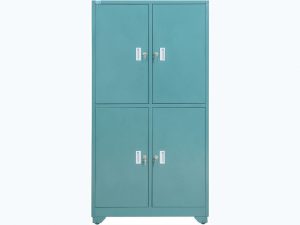 Tủ sắt an toàn văn phòng được làm bằng sắt thép dày sơn tĩnh điện vân sần. Tủ gồm 4 khoang có 4 cánh sắt mở sử dụng khóa riêng biệt, mỗi khoang có 1 đợt di động chia làm 2 tầng để tài liệu, chân tủ gắn bánh xe di chuyển. Các chi tiết tủ liên kết với nhau bằng vít và bulong.