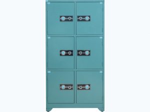Tủ sắt an toàn giám đốc được làm bằng sắt thép dày sơn tĩnh điện vân sần. Tủ gồm 6 khoang có 6 cánh sắt mở sử dụng cơ cấu khóa mã, chân tủ gắn bánh xe di chuyển. Các chi tiết tủ liên kết với nhau bằng vít và bulong.