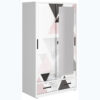 Tủ sắt treo (đựng) quần áo đựng đồ được làm bằng sắt sơn tĩnh điện in UV. Tủ dùng để phục vụ cho cá nhân, hộ gia đình. Tủ gồm 3 cánh mở gồm 2 khoang. Khoang bên trái dùng 2 cánh mở chung 1 khoá bên trong gồm 1 đợt cố định, 1 đợt di động và 1 suốt treo quần áo, khoang bên phải gồm 2 đợt di động, 1 ngăn phụ có khóa. Cánh tủ được trang bị hoạ tiết hiện đại.