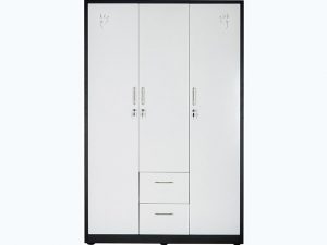 Tủ sắt treo (đựng) quần áo đẹp được làm bằng sắt sơn tĩnh điện. Tủ dùng để phục vụ cho cá nhân, hộ gia đình. Tủ gồm 3 cánh mở và 2 ngăn kéo. Khoang phải có 2 đợt di động và 1 suốt treo áo, khoang trái và giữa có 1 đợt cố định, 1 đợt di động và 2 suốt treo áo, cánh giữa có 1 tấm gương. Cánh tủ được trang trí họa tiết laser hiện đại.
