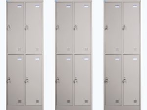 Tủ sắt locker giá rẻ được làm bằng sắt sơn tĩnh điện màu ghi. Tủ có 4 khoang cánh mở bên trong mỗi có 1 đợt cố định và 1 suốt treo quần áo. Trên mỗi cánh có 1 khóa locker, núm tay nắm và tai móc khóa.