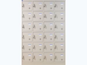 Tủ sắt locker nhiều ngăn được làm bằng sắt sơn tĩnh điện màu ghi. Tủ có 24 khoang cánh mở. Trên mỗi cánh có 1 khóa locker, núm tay nắm và tai móc khóa. Tủ sử dụng thép dày 0.5mm.