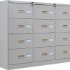 Tủ tài liệu sắt ghép được làm bằng sắt sơn tĩnh điện màu ghi. Tủ có 3 khoang, mỗi khoang có 7 ngăn kéo để file tài liệu sử dụng chung 1 khóa dàn.