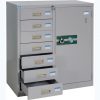 Tủ sắt ghép sơn tĩnh điện được làm bằng sắt sơn tĩnh điện màu ghi. Tủ có 2 khoang, khoang cánh sắt mở bên trong có 2 đợt di động chia làm 3 tầng, 1 khoang có 4 ngăn kéo sử dụng chung 1 thanh khóa dàn.