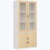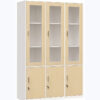 Tủ sắt cánh gỗ văn phòng được làm bằng sắt sơn tĩnh điện màu ghi, có cánh bằng gỗ công nghiệp phủ melamiine. Tủ phía trên có khoang trên có 2 cánh kính khung gỗ bên trong có 2 đợt di động chia làm 3 tầng để tài liệu khoang bên phải có 1 cánh gỗ bên trong có suốt treo áo, Phía dưới có 2 khoang 3 cánh gỗ mở bên trong có 1 đợt di động.