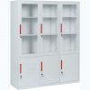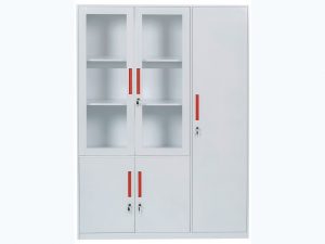 Tủ sắt hiện đại văn phòng được làm bằng sắt sơn tĩnh điện màu trắng phù hợp với không gian văn phòng hiện đại. Tủ gồm 3 khoang với 1 khoang cánh kính mở bên trong có 2 đợt di động chia làm 3 tầng để tài liệu, khoang dưới là 2 cánh sắt mở và 1 khoang cánh mở dài có suốt treo quần áo và 2 đợt di động để đồ.