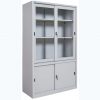 Tủ đựng tài liệu (hồ sơ) cánh kính được làm bằng sắt sơn tĩnh điện màu ghi. Tủ có 1 khoang, có 2 cánh kính mở dùng chung 1 khóa, bên trong có 3 đợt di động chia làm 4 tầng để tài liệu.