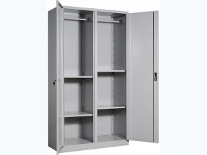 Tủ sắt đựng tài liệu (hồ sơ) đựng đồ được làm bằng sắt sơn tĩnh điện màu ghi. Tủ có 2 khoang cánh mở, mỗi khoang có 2 đợt di động và suốt treo quần áo.
