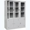 Tủ sắt đựng tài liệu (hồ sơ) văn phòng được làm bằng sắt sơn tĩnh điện màu ghi. Tủ gồm 6 khoang, phía trên gồm 3 khoang cánh kính mở có 2 đợt di động chia làm 3 tầng để tài liệu, khoang dưới gồm 3 cánh sắt mở.