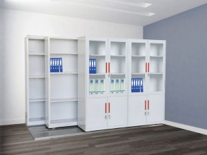 Tủ thư viện di động – giá compact văn phòng được làm bằng sắt sơn tĩnh điện. Tủ di động sử dụng hệ thống ray trượt nhằm tiết kiệm không gian. Gía gồm 3 lớp.